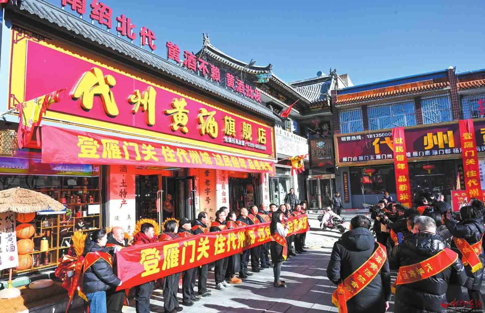1月11日,代縣11家代州黃酒品牌門店聯(lián)合開業(yè),吸引了來(lái)自代縣酒業(yè)界的行業(yè)代表、特邀嘉賓及媒體單位等近百人參加開業(yè)儀式。儀式結(jié)束后,主辦方向環(huán)衛(wèi)工人代表贈(zèng)送了代州黃酒慰問(wèn)品。(王晉東攝)