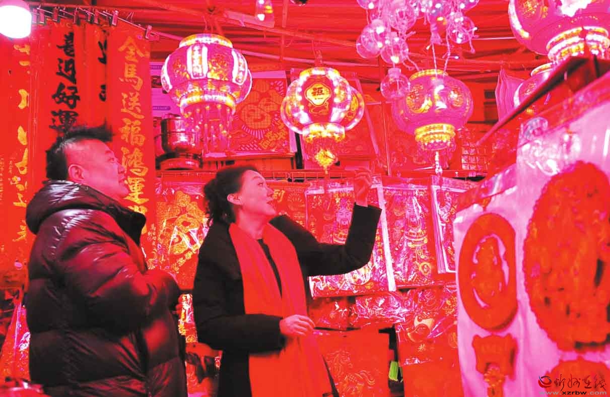 新春將近,寧武縣消費(fèi)市場(chǎng)年味濃郁,紅燈籠作為迎新春的經(jīng)典元素,成為年貨市場(chǎng)的“主角”。圖為市民正在采購燈籠。(