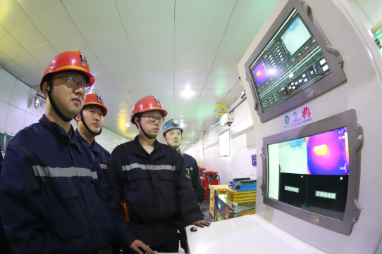 機(jī)電硐室燈光明亮,在一段120米的頭頂軌道上,一個(gè)小小的5G機(jī)器人正在來回移動(dòng),進(jìn)行360度視頻監(jiān)測、音頻采集、紅外熱成像。“這是無人巡檢機(jī)器人,還能精準(zhǔn)記錄設(shè)備故障發(fā)生的時(shí)間、地點(diǎn)以及參數(shù)。通過5G網(wǎng)絡(luò)回傳到數(shù)據(jù)中心?!毙略旱V5G智能化辦公室主任冀杰說,原來配電室都是靠人檢查,憑的是經(jīng)驗(yàn);但機(jī)器可以24小時(shí)巡查,不是人力可以比的。“巡檢機(jī)器人代替人在井下巡檢的意義在于,可以逐步實(shí)現(xiàn)井下減人、少人,實(shí)現(xiàn)煤礦安全生產(chǎn)和效益雙贏。”