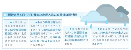 據(jù)氣象部門報(bào)告,預(yù)計(jì)8月4日-7日,我省將出現(xiàn)入汛以來(lái)最強(qiáng)降雨過程。為做好此次強(qiáng)降雨防范應(yīng)對(duì),8月3日下午,省防汛抗旱指揮部組織了緊急會(huì)商,進(jìn)一步強(qiáng)弱項(xiàng)、補(bǔ)短板,全力做好各項(xiàng)工作,確保安全度汛。