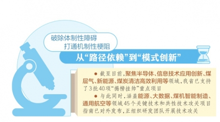 截至目前,聚焦半導體、碳基新材料、信息技術應用創(chuàng)新、煤層氣、新能源、煤炭清潔高效利用等領域,我省已支持了3批40項“揭榜掛帥”重點項目,省財政引導資金2億元,帶動企業(yè)投資7億元。與此同時,涵蓋能源、大數(shù)據(jù)、煤機智能制造、通用航空等領域45個關鍵技術和共性技術攻關項目指南已對外發(fā)布,正組織研發(fā)團隊開展技術攻關。