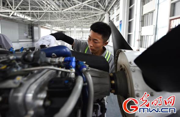 中國民航大學(xué)內(nèi)蒙古飛行學(xué)院的學(xué)員正在進(jìn)行通用飛行器維修訓(xùn)練。光明網(wǎng)記者 潘迪攝
