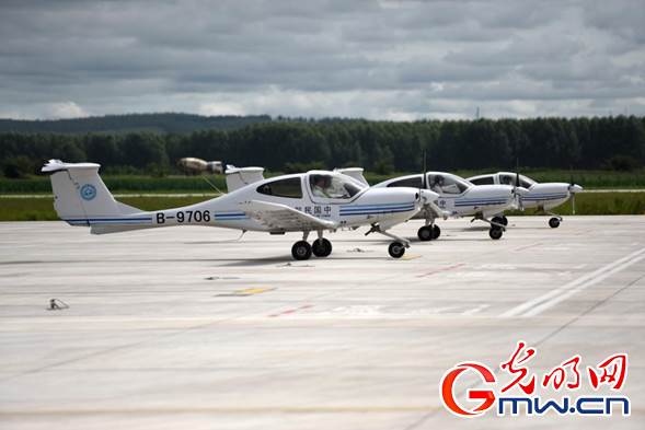 光明網(wǎng)訊(記者 趙艷艷 潘迪 李剛)“嘟嘟嘟……”在內(nèi)蒙古自治區(qū)扎蘭屯成吉思汗機(jī)場(chǎng)的跑道上,一架架訓(xùn)練機(jī)整齊劃一,蓄勢(shì)待發(fā)。沒幾分鐘,隨著飛行學(xué)員們熟練的操作,訓(xùn)練機(jī)機(jī)群直上云霄,在成吉思汗機(jī)場(chǎng)上空畫出一道道美麗的弧線。這些年輕的飛行學(xué)員們,來自中國民航大學(xué)內(nèi)蒙古飛行學(xué)院。