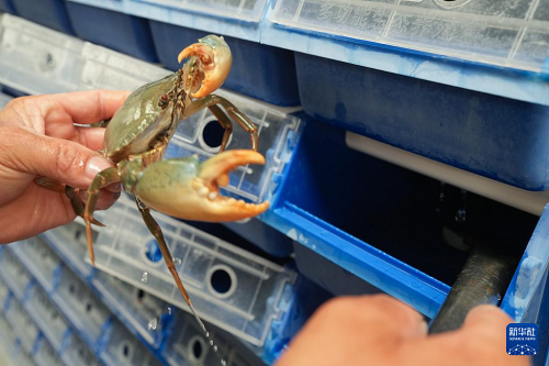 9月2日,在寧??h一市鎮(zhèn)的一家青蟹生產(chǎn)企業(yè),工作人員在暫儲青蟹的“蟹公寓”中查看其健康狀態(tài)。(新華社記者 翁忻旸 攝)