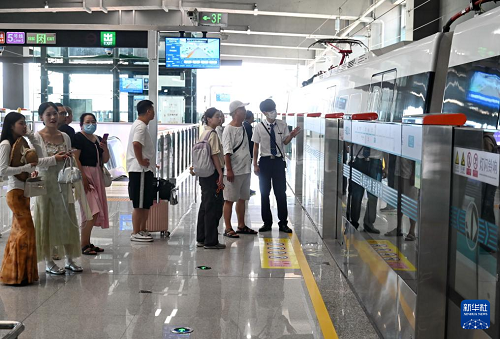 9月29日,人們在濱??炀€帝封江站等候前往福州長樂國際機場的列車。(新華社記者 林善傳 攝)