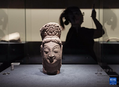 10月9日在特展現(xiàn)場(chǎng)拍攝的云岡文物。(新華社記者 劉穎 攝)