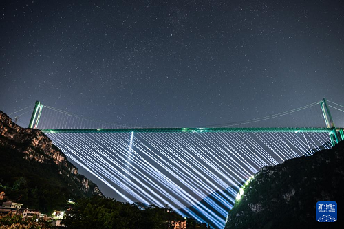 這是10月11日拍攝的星空下的貴州花江峽谷大橋。(新華社記者 楊文斌 攝)