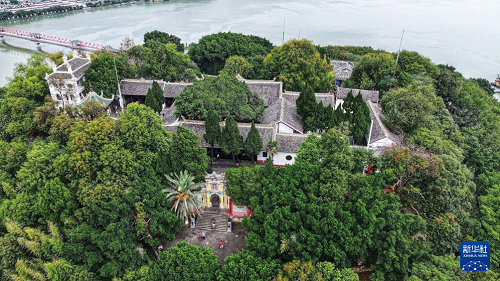 10月27日,游客在重慶奉節(jié)白帝城景區(qū)參觀(無(wú)人機(jī)照片)。(新華社記者 劉潺 攝)