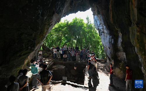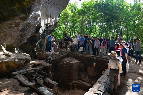 11月8日,考古專(zhuān)家在三亞落筆洞遺址觀(guān)察發(fā)掘現(xiàn)場(chǎng)。(新華社記者 郭程 攝)