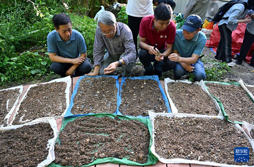11月8日,考古專(zhuān)家對(duì)三亞落筆洞遺址出土土壤進(jìn)行篩選。(新華社記者 郭程 攝)