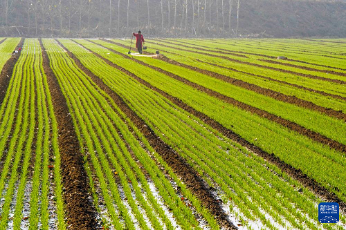 11月11日,河北省遵化市東新莊鎮(zhèn)農(nóng)民給冬小麥澆水。(新華社發(fā) 劉滿倉(cāng) 攝)
