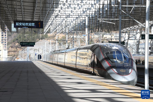 11月17日,一列試驗動車組抵達延安站。(新華社發(fā) 張黎芝 攝)