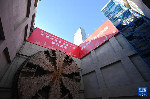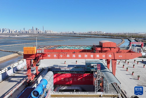 11月27日拍攝的津?yàn)H高鐵津沽海河隧道盾構(gòu)工區(qū)。(新華社記者 李然 攝)