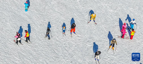 12月6日,滑雪愛好者在黑龍江省亞布力滑雪旅游度假區(qū)雪場體驗(yàn)滑雪(無人機(jī)照片)。(新華社發(fā) 原勇 攝)