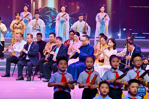 12月10日,南音社團(tuán)代表及中小學(xué)生在“南音薪傳 四海弦歌”專場演出上表演。(新華社記者 姜克紅 攝)