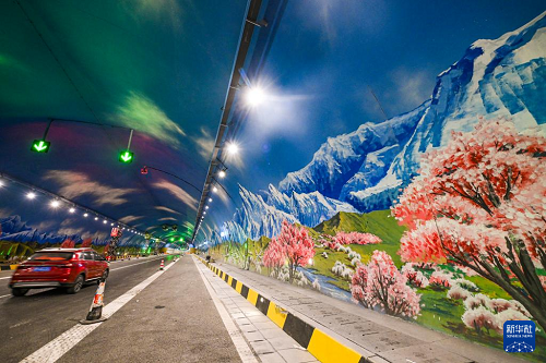 新疆烏尉高速公路天山勝利隧道內景(12月23日攝)。(新華社記者 王菲 攝)