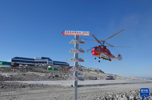 12月29日,“雪鷹102”直升機(jī)在秦嶺站降落。(新華社記者 顧天成 攝)