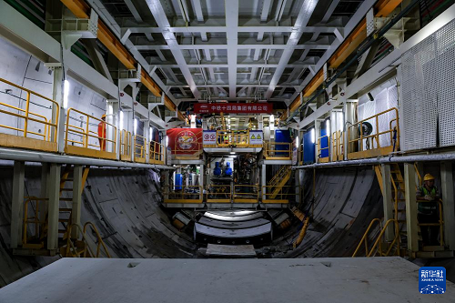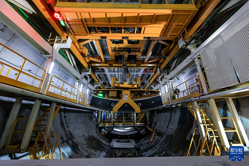 1月6日,“深江1號”盾構機在珠江入海口海平面下掘進。(新華社記者 毛思倩 攝)