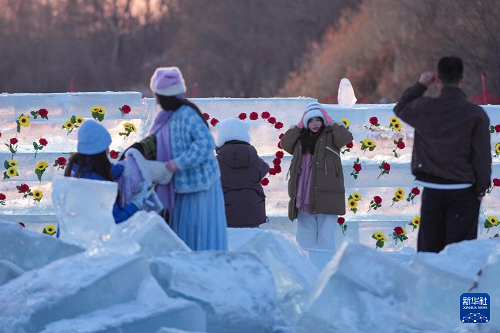 時(shí)下,“冰城”哈爾濱市正值冰雪旅游旺季。松花江哈爾濱段一處采冰場(chǎng),由于大量堆積高純凈度的冰塊,而被游客稱(chēng)為“鉆石?!?,成為網(wǎng)紅景區(qū)。只要是晴好天氣,都會(huì)有許多游客來(lái)到“鉆石?!本皡^(qū),欣賞浪漫的落日美景。