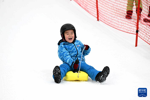 1月11日,小朋友在石家莊市“熱雪奇跡”滑雪場體驗(yàn)冰雪運(yùn)動。(新華社發(fā) 陳其保 攝)