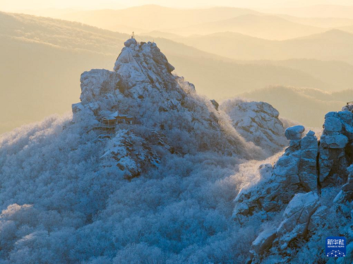 1月25日晨,位于黑龍江省雙鴨山市境內(nèi)的黑龍江七星山國(guó)家森林公園出現(xiàn)霧凇景觀,朝暉映射下,霜華滿山,蔚為壯觀。