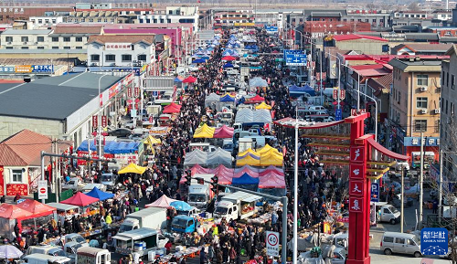 這是1月26日拍攝的天津蘆臺(tái)大集(無(wú)人機(jī)照片)。(新華社記者 孫凡越 攝)