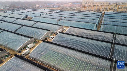 1月28日拍攝的莘縣燕店鎮(zhèn)的蔬菜種植大棚(無人機(jī)照片)。(新華社記者 徐速繪 攝)