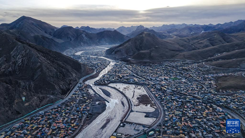 這是1月30日拍攝的青海省玉樹藏族自治州雜多縣冬景風(fēng)光(無(wú)人機(jī)照片)。(新華社記者 齊芷玥 攝)