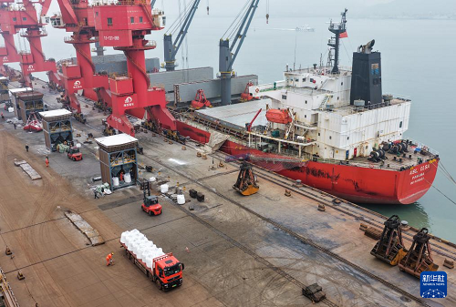 春耕農(nóng)忙時(shí)節(jié),江蘇連云港港暢通農(nóng)用物資綠色通道,對(duì)化肥等農(nóng)資做到隨到隨卸,裝車運(yùn)輸全程高效流水作業(yè),確保春耕農(nóng)資供應(yīng)。