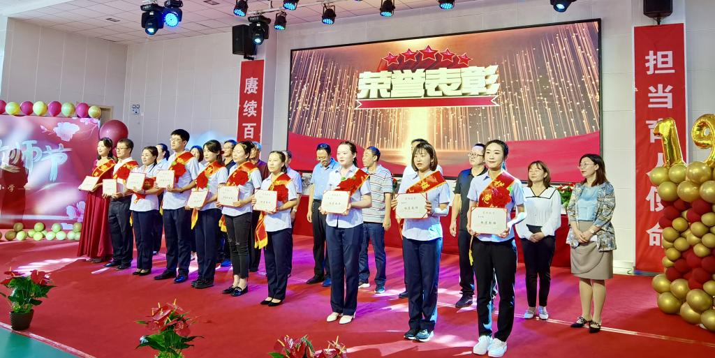 活動(dòng)現(xiàn)場(chǎng),學(xué)校對(duì)14名優(yōu)秀教師進(jìn)行了表彰,其中1名為優(yōu)秀教育工作者,8名為模范教師,5名為模范班主任。通過表彰先進(jìn),鼓勵(lì)老師們?cè)俳釉賲枺^續(xù)發(fā)揮愛崗敬業(yè)、立德樹人,三尺講臺(tái)育英才的精神,為下一代成長教育發(fā)揮更大的作用。