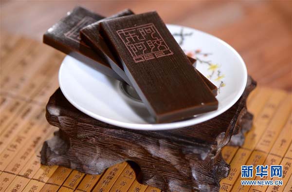 這是山東東阿縣一家阿膠企業(yè)生產的阿膠藥品(2015年12月28日攝)。新華社記者 周科 攝