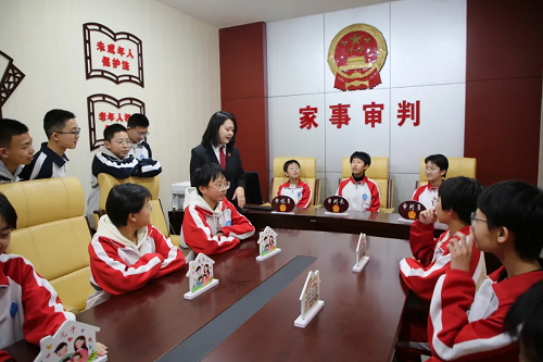在法院講解員的帶領下,學生們依次參觀了訴訟服務中心、家事文化長廊、陽光大廳、科技法庭、院史陳列室等場所,認真觀看了中院全面建設專題片和中院干警自編自導自演的預防未成年人犯罪題材法治微電影《你依然是天使》,對法院的職能作用、機構設置、歷史文化、信息化建設有了更為深刻的認識。