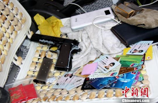 抓捕張軍(化名)現(xiàn)場(chǎng)繳獲的手槍等物品。 張懷安 攝