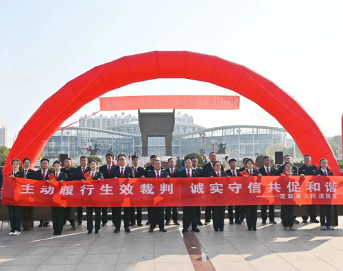 為切實將勝訴當(dāng)事人的“紙上權(quán)益”轉(zhuǎn)化為“真金白銀”,有效敦促被執(zhí)行人主動履行法律義務(wù),積極營造“守信光榮、失信可恥”的良好社會氛圍,10月29日,定襄法院在金鼎廣場舉行“執(zhí)行宣傳周”啟動儀式。定襄法院黨組書記、院長張曉峰出席啟動儀式,執(zhí)行局全體干警及相關(guān)部門負責(zé)同志參加活動。
