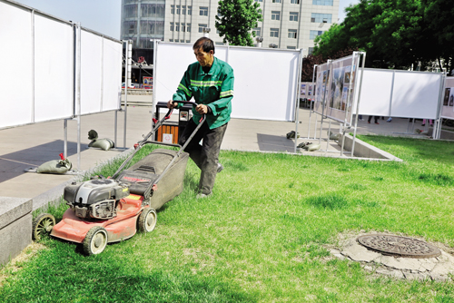 近日,城區(qū)日月廣場上,園林工人正在對草坪進(jìn)行修剪。隨著氣溫增高,雨水充足,草坪和路邊的灌木生長茂盛,園林工人及時對草坪、灌木進(jìn)行修剪,保證了城區(qū)綠化帶干凈整潔。(張志遠(yuǎn) 攝)