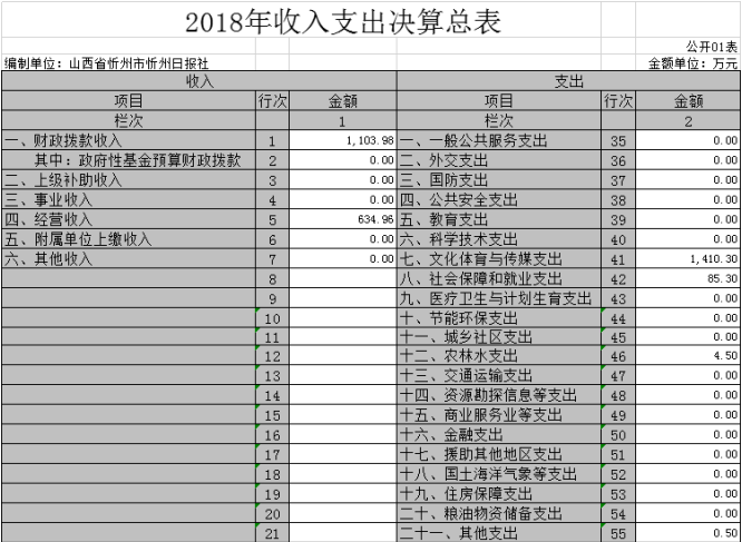 (三)部門決算單位構(gòu)成:忻州日?qǐng)?bào)社是一級(jí)預(yù)算單位,無(wú)下屬單位。部門預(yù)算只有一個(gè)單位,即忻州日?qǐng)?bào)社。