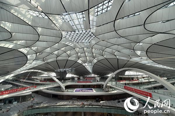 北京大興國際機場作為獻禮新中國成立70周年的國家標(biāo)志性工程,地處京津冀核心地帶,是未來國家乃至世界級綜合交通樞紐。從空中俯瞰海星狀的航站樓,五個支廊呈放射狀從航站樓中心向外延伸出去,像一只鋼鐵大鳥展翅欲飛。