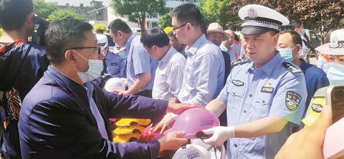 本報訊 為最大限度減少因交通事故造成的人員傷亡,5月14日,市公安局交警支隊聯(lián)合市保險業(yè)協(xié)會、太平洋保險忻州分公司和城區(qū)快遞、外賣企業(yè),舉辦以“一盔一帶”為主題的警企聯(lián)合勸導(dǎo)活動,在進行安全宣傳的同時,為途經(jīng)的騎行市民發(fā)放安全頭盔。對駕乘摩托車不佩戴頭盔、駕乘車輛不按規(guī)定佩戴安全帶的交通違法行為進行勸導(dǎo),積極倡導(dǎo)市民在騎電動自行車時佩戴頭盔。