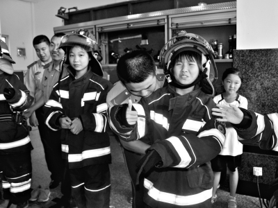 “叔叔,這是干什么用的?” 樂樂拿起一個面罩轉(zhuǎn)了幾圈?!斑@個叫防毒面具,可以防止毒氣、煙霧進(jìn)入鼻子和嘴巴?!币幻绬T戰(zhàn)士告訴樂樂,在發(fā)生火災(zāi)時,為了防止毒氣、煙霧吸入口中,小朋友們可以用濕毛巾代替,把濕毛巾對折捂住嘴巴和鼻子。“毛巾打濕后最好稍微擰一下,讓毛巾不滴水,這樣防毒的效果最好?!?/p>