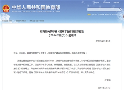 目前學(xué)校實行的相關(guān)體測標(biāo)準(zhǔn)依據(jù)的是2014年教育部印發(fā)的《國家學(xué)生體質(zhì)健康標(biāo)準(zhǔn)》。 網(wǎng)絡(luò)截圖