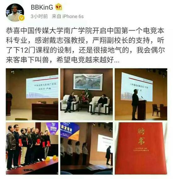 南廣學(xué)院為此還專門召開了一場(chǎng)藝術(shù)與科技專業(yè)(電子競(jìng)技分析方向)新聞發(fā)布會(huì),參加發(fā)布會(huì)的除了校方以外還有 LGD 俱樂(lè)部創(chuàng)始人潘婕,前星際爭(zhēng)霸選手楊沛,《中國(guó)電子競(jìng)技幕后史》作者劉洋(BBKING)等電競(jìng)?cè)θ耸?。中?guó)傳媒大學(xué)南廣學(xué)院副校長(zhǎng)嚴(yán)翔教授為李曉峰、劉 洋、潘婕、楊沛、田云鵬五位電競(jìng)從業(yè)者頒發(fā)了“業(yè)界導(dǎo)師”的聘書,這不僅標(biāo)志著電子競(jìng)技專業(yè)正式納入本科培養(yǎng)體系,更代表著電子競(jìng)技行業(yè)的優(yōu)秀從業(yè)者們將 為培養(yǎng)更多優(yōu)秀的電子競(jìng)技專業(yè)人才貢獻(xiàn)自己的力量。