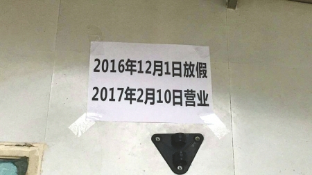 1月18日,路過成都錦江區(qū)中道街的市民楊先生發(fā)現(xiàn),平時生意爆滿的串串店關(guān)門了。在門口的墻上,貼著一張告示:2016年12月1日放假,2017年2月10日營業(yè)。楊先生算了算,這個假期足足71天,讓人羨慕不已。