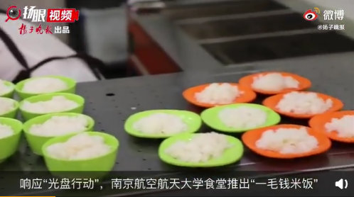 南京航空航天大學(xué)食堂不僅推出“一毛錢米飯”,還推出“光盤獎勵(lì)”,只要“光盤”,便能得到酸奶等獎勵(lì)。