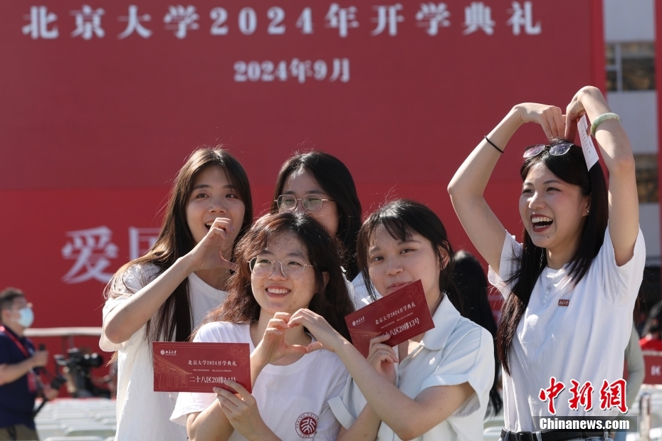 資料圖:新生在開學(xué)典禮后合影留念。中新社記者 蔣啟明 攝