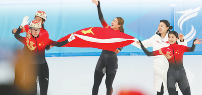 第九屆亞冬會(huì)短道速滑女子3000米接力A組決賽,中國隊(duì)奪得冠軍。新華社記者 楊 磊攝