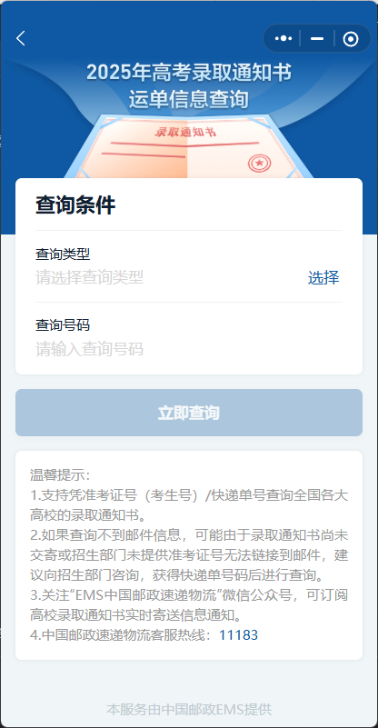 考生可以通過國務(wù)院客戶端小程序,進(jìn)行高考錄取通知書運(yùn)單信息查詢。?
