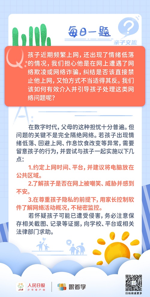 每日一題丨擔(dān)心孩子遭遇網(wǎng)絡(luò)欺凌,家長該怎么辦?