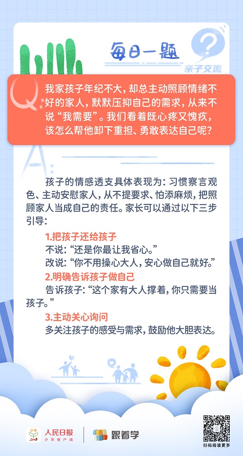 每日一題丨孩子過度懂事壓抑自我,家長該如何引導(dǎo)?