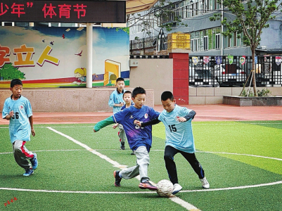 當(dāng)天下午,太原市雙東小學(xué)的大課間鈴聲準(zhǔn)時(shí)響起——“走,練射門去!”六年級(jí)學(xué)生張浩宇一把抓起足球,和隊(duì)友們直奔操場(chǎng)。上、下午各30分鐘的陽光大課間正有序開展,韻律操、武術(shù)操的音樂響徹校園。