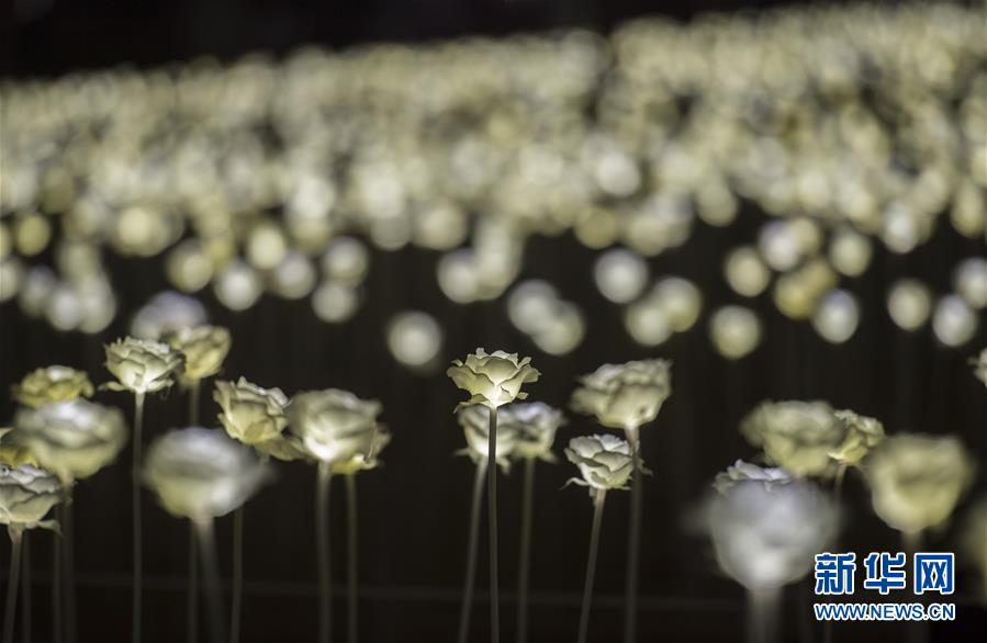 這是在中環(huán)海濱拍攝的白玫瑰花燈(2月13日攝)。 2月13日,來自韓國首爾的LED Rose Garden大型公共展覽亮相香港。25000朵LED白玫瑰花燈在中環(huán)海濱展出,在情人節(jié)即將到來之際點亮維港,營造出浪漫甜蜜的氛圍。新華社記者 呂小煒 攝